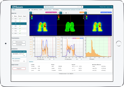 Based on the use of EPID (Electronic Portal Imaging Device), EPIbeam is a web-based software to check external radiotherapy beams in pretreatment conditions.